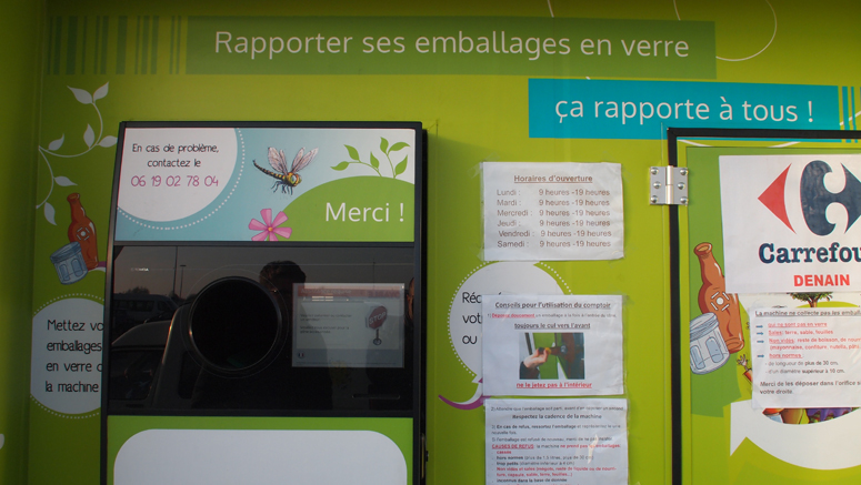 La capacité globale de ce kiosque à verre est de 5 000 bouteilles par jour. D’autres sites sont en discussion avec notamment les différents Centre Leclerc sur le Hainaut. Une idée porteuse car cette matière est recyclable à l’infini !