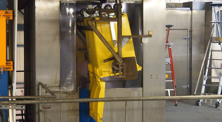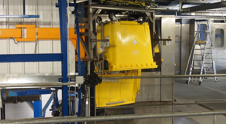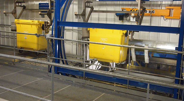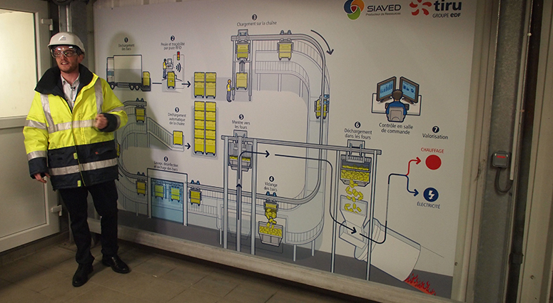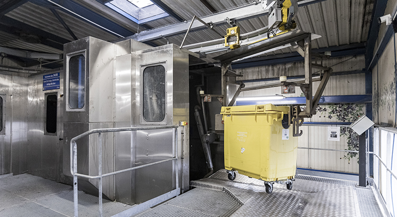 Les camions remplis de déchets, le plus souvent de différents hôpitaux, arrivent au SIAVED. Là, chaque BAC est identifié, pesé, ainsi que son contenu, grâce à une puce RFID électronique. Ensuite, ce BAC plein va suivre une chaîne jusqu’au versement des déchets dans le four. Ensuite, commence le cycle du lavage, de la désinfection, du séchage. La nouveauté réside « sur deux étages, les BACS arrivants ne croiseront jamais les BACS sortants. Le personnel n’est plus exposé, le travail est plus confortable. Et j’en profite pour remercier les salariés pour son adaptation à cette nouvelle chaîne DASRI, malgré une période difficile cet hiver durant les travaux », explique le président du SIAVED.