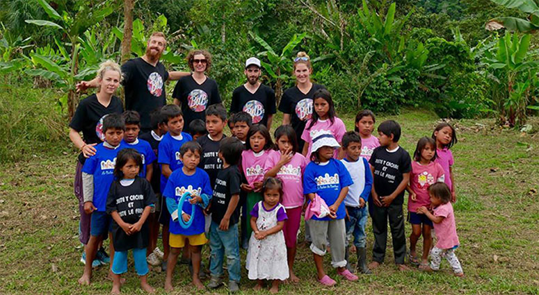 L’équipe BDB est partie en pirogue à la rencontre des enfants défavorisés de communautés en Amazonie pour la distribution de vêtements à Santa Barbara et Yana Rumi. Il suffit de regarder la vidéo pour voir les visages des enfants s’illuminer quand ils reçoivent les tee-shirts floqués Juste y croire et juste le faire. Ces enfants ont en échange mis tout leur cœur pour danser en l’honneur de leurs hôtes. « Nous avons été hébergés chez l’habitant à Moyuna où nous avons également distribué des vêtements et donner des fournitures scolaires à l’école de la ville. Après l’activité sportive, nous sommes allées nous laver dans la rivière juste à côté. Tous les enfants nous ont suivis. Du coup bataille d’eau et distribution de savon pour tout le monde, c’était un moment rigolo ».