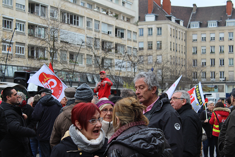 Manifestation locale, régionale, et nationale, le croisement des luttes étaient au rendez-vous sous les fenêtres de l’Hôtel de Ville de Valenciennes. Bien sûr, sur le Valenciennois, l’avenir de la sidérurgie est plus que préoccupant. La présence du député du Front National, Sébastien Chenu, ne fut pas du tout du goût des manifestants.