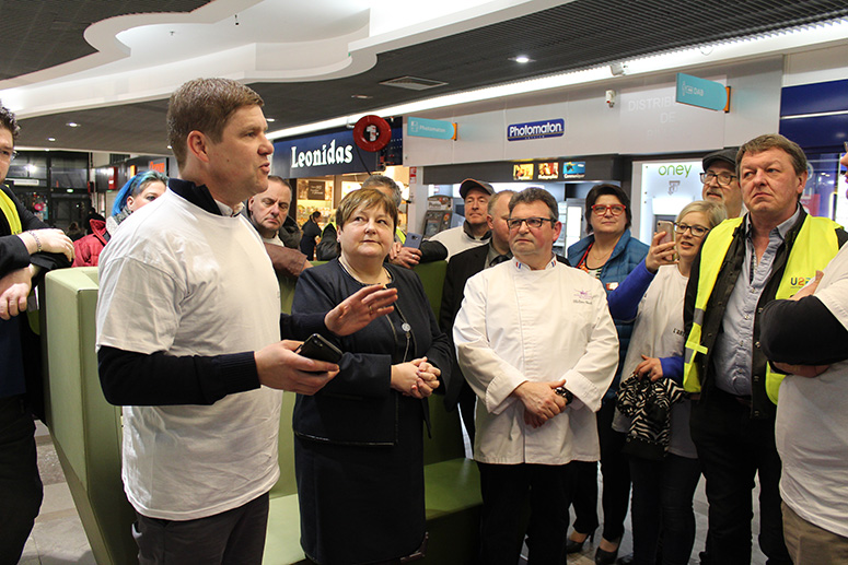 En compagnie de la député de la 21ème circonscription Béatrice Descamps, de Philippe Guilbert, président de la Fédération des Pâtissiers des Hauts-de-France, de Patricia Fournier, responsable de la commission territoriale de la Chambre des Métiers et de l’Artisanat, du président de la FTIAVAL, Guy Paul Simon, et de nombreux artisans, une tournée d’inspection était organisée afin de vérifier de visu les affichages « pour lesquels nous irons en justice », précise Laurent Rigaud.