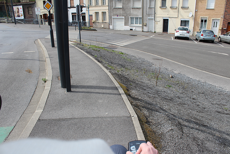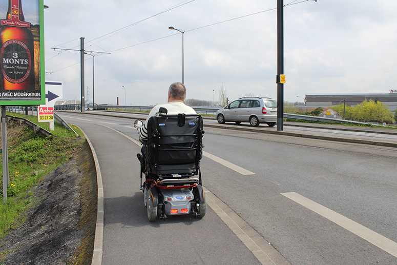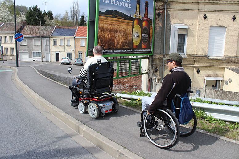 De suite, vous constatez avec un fauteuil électrique que la montée est difficile compte tenu de la raideur de la pente, les premiers poteaux sur le cheminement sont négociables, mais pas avec un espace minimum « de 1,40 mètre », ajoute-t-il. Pour le second testeur, à la force des bras, la montée est possible car Karim Abdel Bennaî est un handi-basketteur, il réussit cette ascension… !