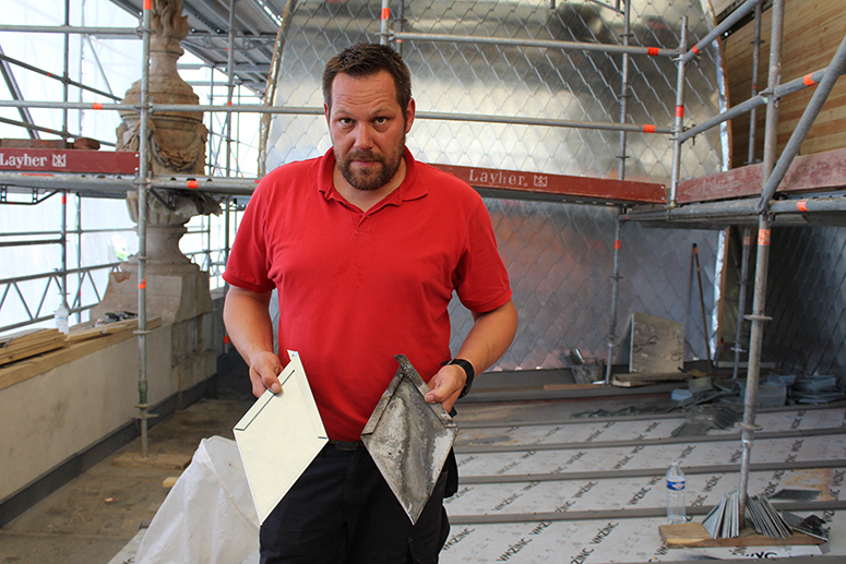 Sur le chantier du théâtre de Denain « nous avons constaté l’extrême délabrement des charpentes. Nous avons dû les conforter. Ensuite, la façade est rénovée intégralement avec tous ces ornements », ajoute l’architecte. La prouesse architecturale est le remplacement des écailles de zinc. « Elles ont plus d’un siècle, malgré une rénovation partielle dans les années 50/60 », souligne le responsable de l’entreprise Leroy, en charge de cette couverture sur l’ensemble du théâtre. La rénovation à l’identique est bluffante « les précédentes écailles de zinc ont résisté presque un siècle », ajoute-t-il.