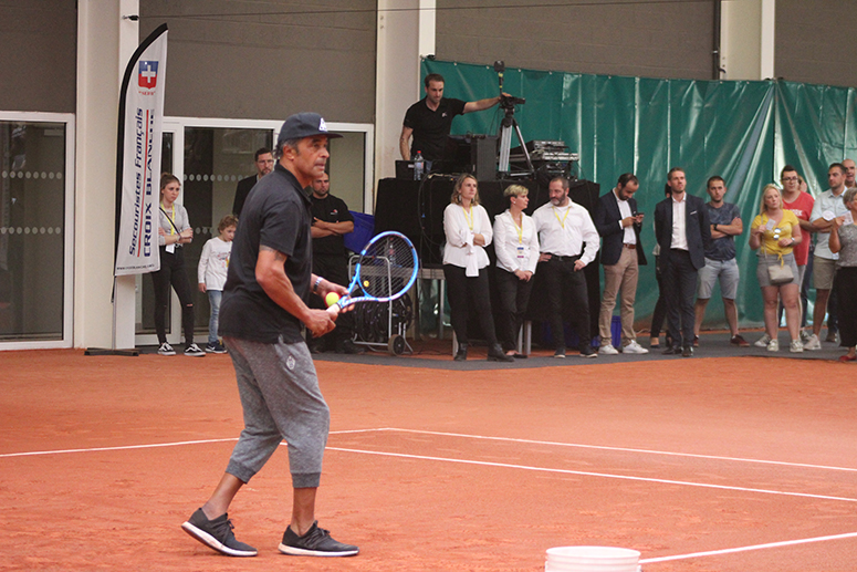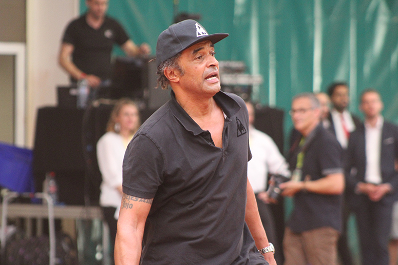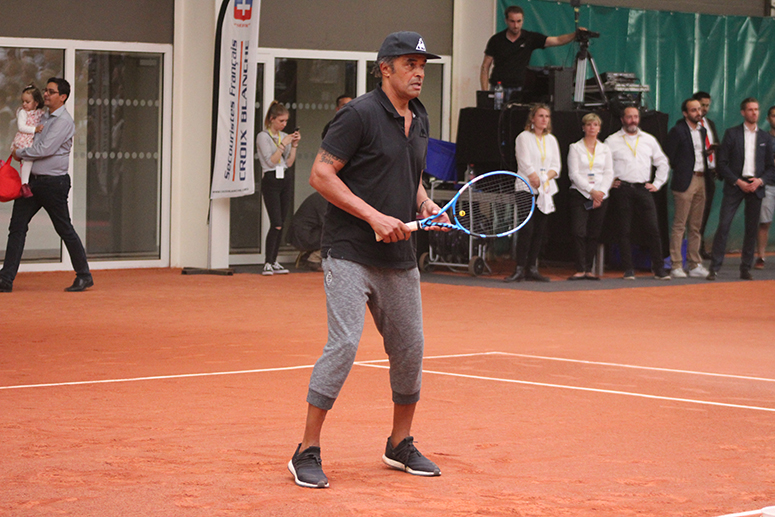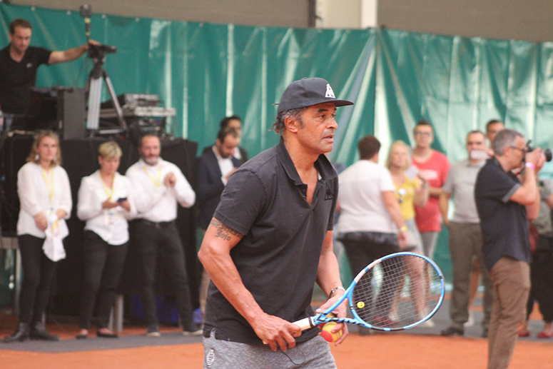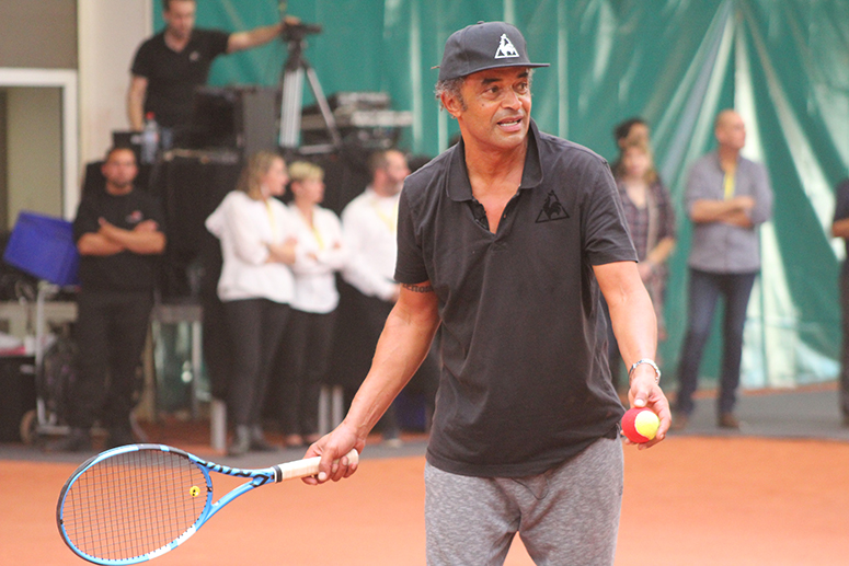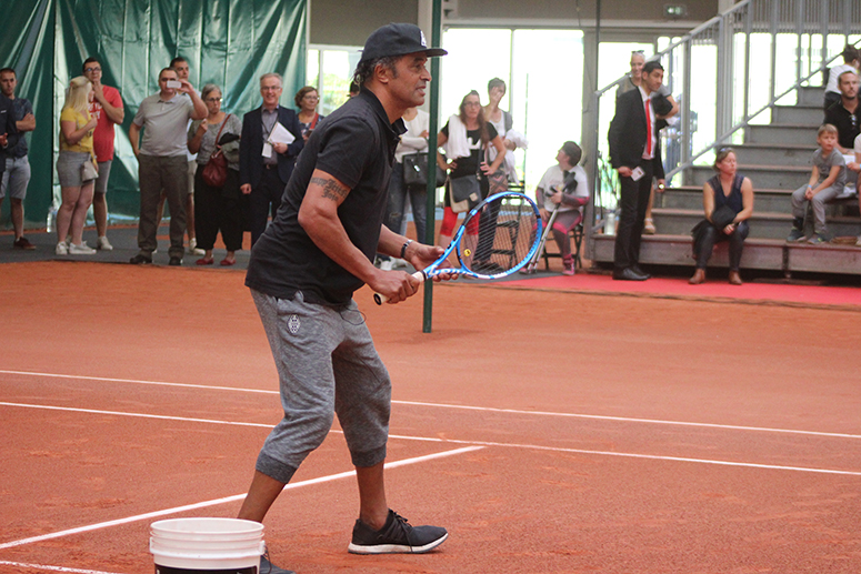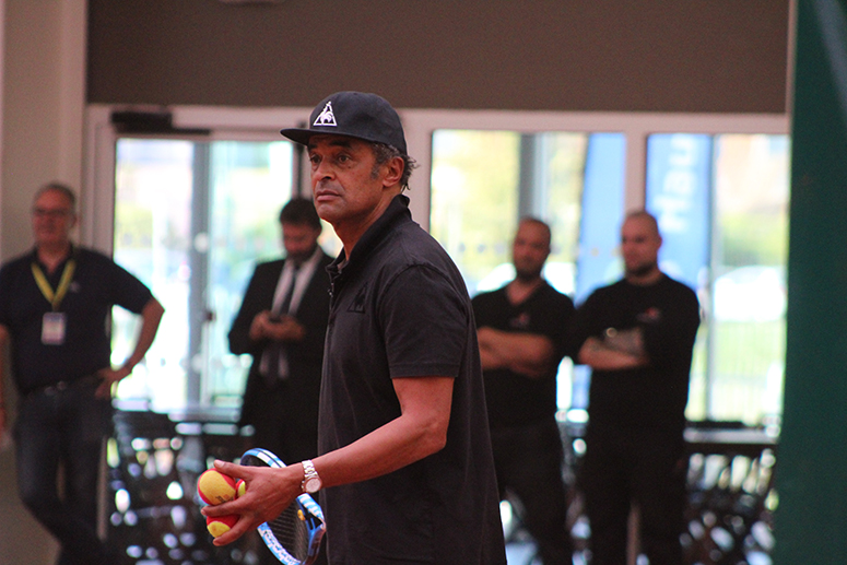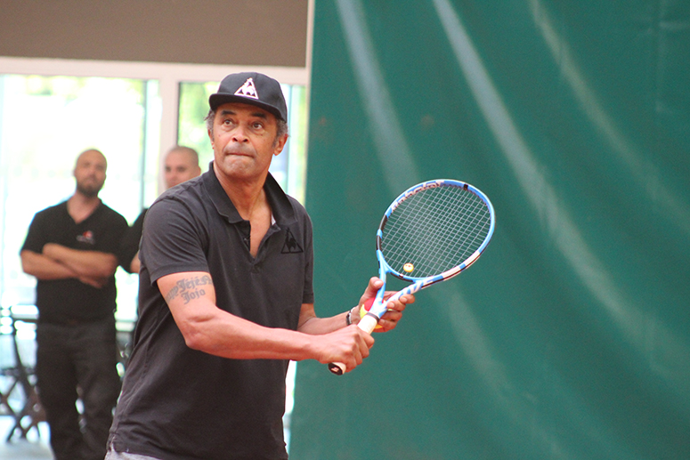 Malgré son aura, Yannick Noah n’est pas responsable d’un soleil digne du mois de juillet… le 13 octobre, et pourtant sa séance de jeu avec les jeunes du club fut un moment lumineux.