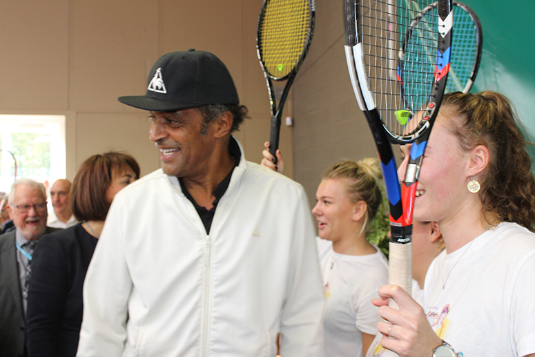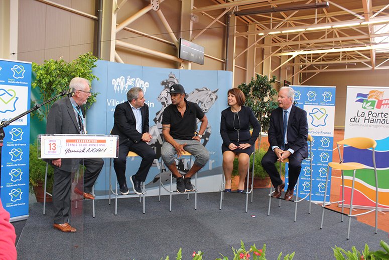 Une tribune bondée de fans avait remplacé le 3ème cour de tennis. Devant cette foule toute acquise, la première magistrate a tenu à remercier, outre le champion, ses nombreux partenaires qui ont rendu possible la réalisation de cet équipement, l’Etat, la Porte du Hainaut, la Région des Hauts-de-France. Cet équipement est avant tout un vecteur pour le développement sportif des jeunes, avant toute idée de compétition de haut niveau. « J’ai beaucoup reçu du tennis. Maintenant, je veux transmettre. Il faut qu’un maximum de gamins pratiquent le tennis », commente Yannik Noah. Il a joint les paroles aux actes en passant du découpage de ruban, au professeur de tennis.