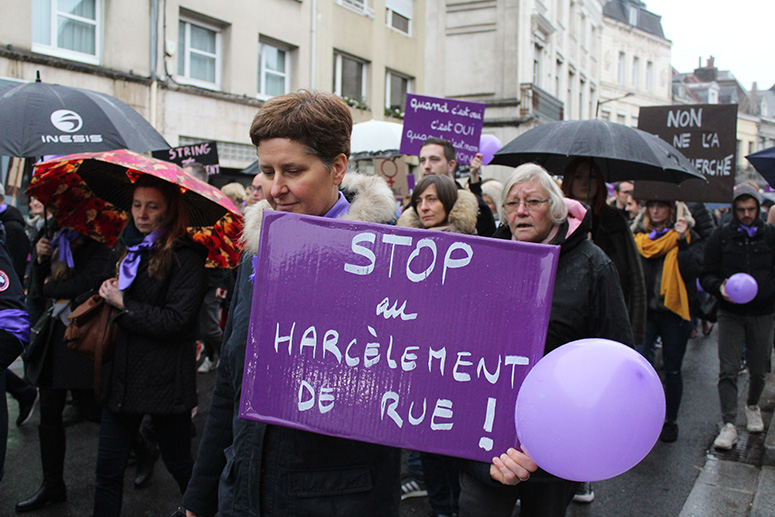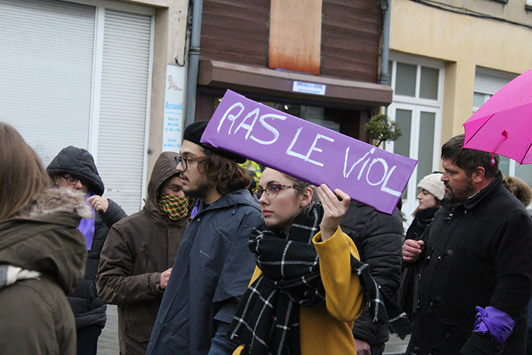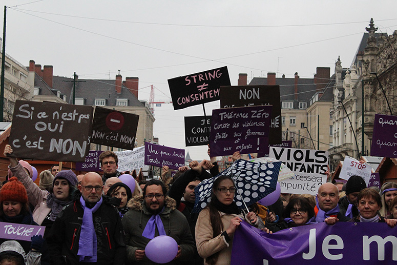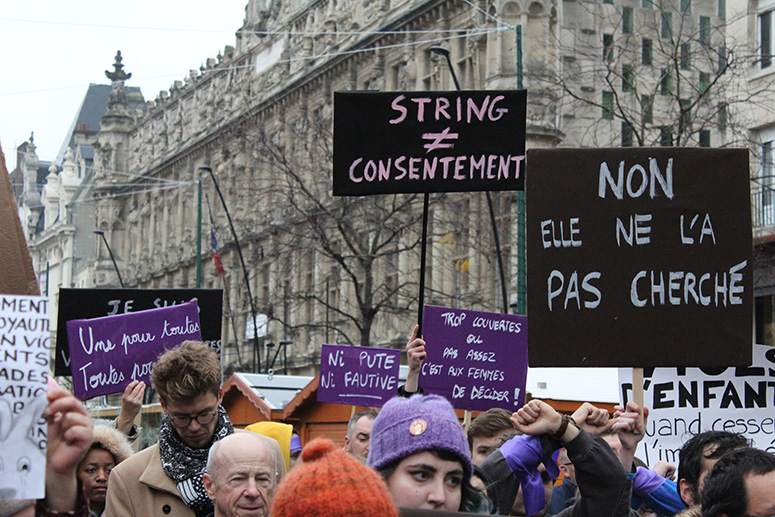 Puis, cette marche a débuté tranquillement en écoutant un organisateur égrenant les chiffres de la violence sexuelle quotidienne, ça cogne ! Un slogan revenait également régulièrement « Oui, c’est oui, non, c’est non… ».