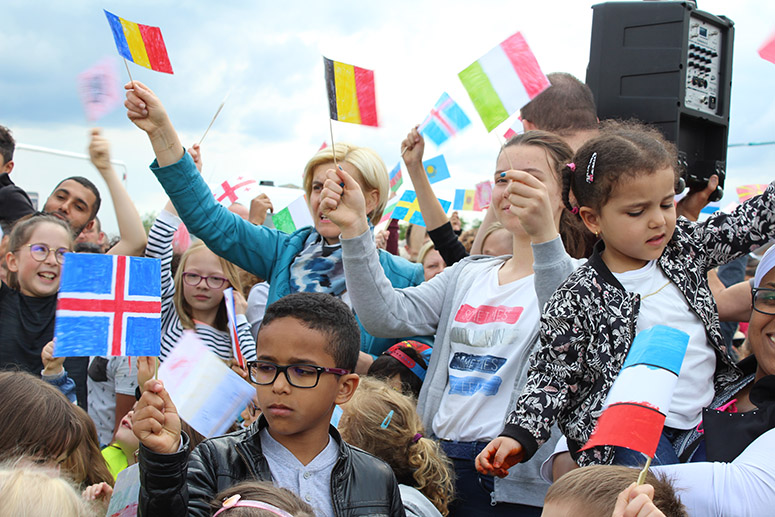 Non, ces enfants ne sont pas des fans de la Coupe du Monde de football féminin, mais une jeunesse enthousiaste durant la cérémonie d’inauguration très réussie du dernier rond-point, nombril du monde, à Saint-Amand-les-Eaux. Tout naturellement, après les élections européennes, c’était au tour du Rond-Point Europe !