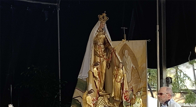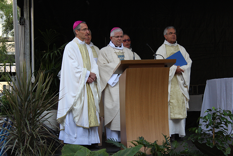 Comme en 2016, cette cérémonie se situait sur la Place D’Armes. Par contre, le décorum a radicalement changé, fini les chaises en silo avec une structure au niveau de la Galerie Place d’Armes. Cette fois, le podium fait face à la mairie, devant ses pèlerins du jour, le symbole est formidable, le mariage du laïque et de la religion, l’harmonie !