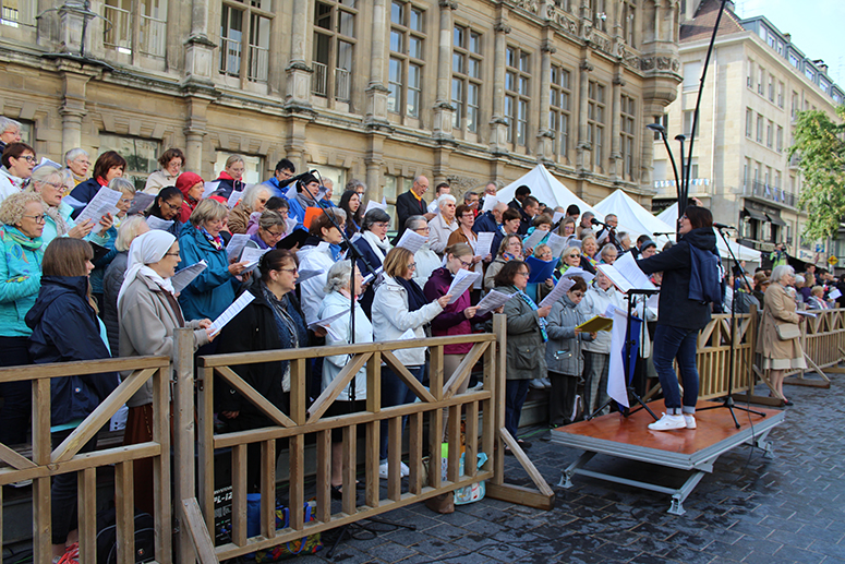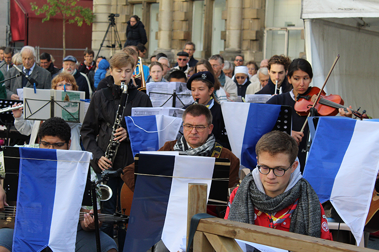 L’événement 2019 de cette célébration du Tour Saint-Cordon à Valenciennes résidait dans la localisation de cette manifestation religieuse et laïque à la fois. En effet, comme en septembre 2016, la messe s’est déroulée Place d’Armes à Valenciennes, magnifique !