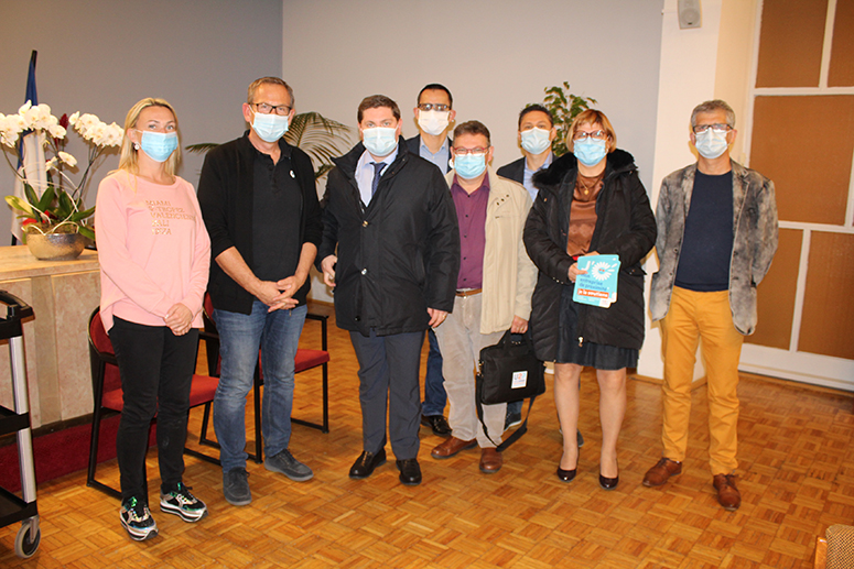 Sur ce visuel, M. et Mme Gilbert, Président de la Fédération des Hauts-de-France, Patricia Fournier, responsable de la CMA du Valenciennois, Philippe Loy, représentant de la CMA du Valenciennois, Mickaël Bestelle, Directeur du Pôle Emploi de Valenciennes, Christophe Petit, président de l’U2P Hauts-de-France, Nicolas Deleau, le responsable de l’OPCO Entreprise de Proximité Hauts de France, le nouveau financeur des formations, et le responsable Hauts-de-France de la MAPA, l’assureur historique des artisans.