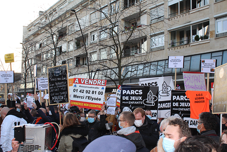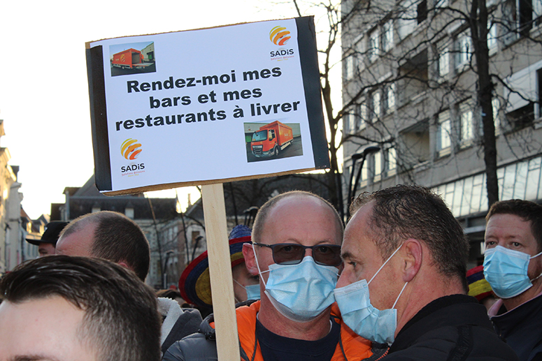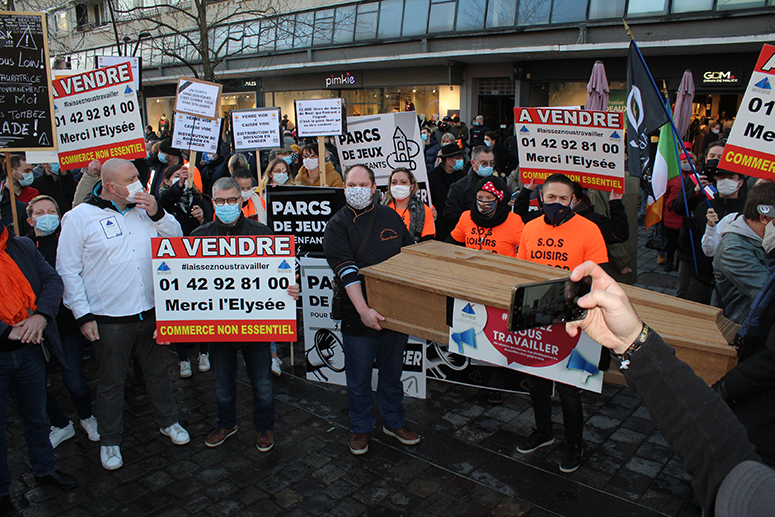 Au sein de cette foule de plusieurs centaines de personnes, les commerces fermés administrativement n’étaient pas les seuls. « Les restaurateurs, cafés, et bars, et établissements de nuit, représentent 85% de mon chiffre d’affaires. On préfère le bon que le volume avec des grandes surfaces. Nous sommes huit salariés, 6 sont en chômage partiel, mais nous n’avons droit à aucune aide », commente le chef d’entreprise des « Caves de l’Abbaye » à Saint-Amand-les-Eaux . A savoir que la bière prêt à consommer, contrairement au vin, ne se conserve pas plus de quelques mois… !