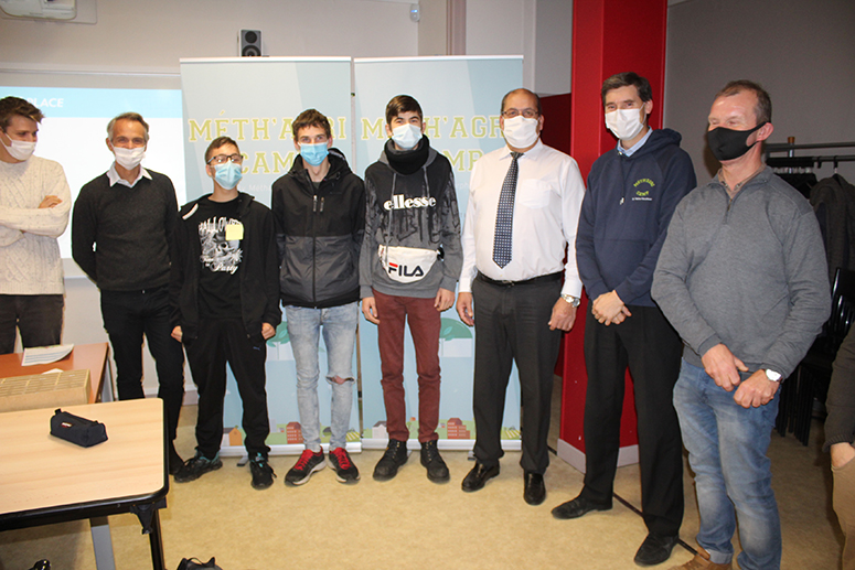 Comme pour le lycée agricole, les 3 chênes sur Le Quesnoy, 4 groupes de travail ont réfléchi à un projet en quelques heures afin de sensibiliser le public à la méthanisation, un gaz vert de proximité. La 1ère place est revenue à un projet où contre collecte de déchets, vous recevez du digestat. Ce sont les résidus issus de la méthanisation des déchets organiques, et il peuvent après traitement être utilisés comme compost.