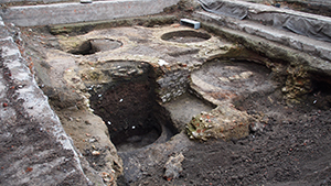 A quatre mètres de profondeur, Alain Henton vous explique que les premières traces découvertes sur ce site remontent à l’époque carolingienne (du 8ème au 10ème siècle) le long de cette rivière sauvage. Ensuite, le 10ème siècle marque les premières tentatives de construction de berges, puis les premiers bâtis…