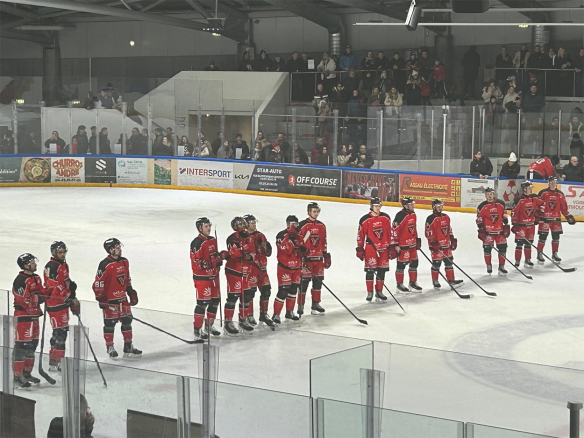 Les 5 premières minutes de la rencontre étaient une pale copie, pas deux passes ajustées de part et d’autre, des erreurs défensives à la pelle, erreurs techniques…, on balançait juste le palet après la ligne rouge pour travailler dans les coins, la solution pour éprouver les adversaires. A ce petit jeu, les Diables Rouges ont commencé à prendre le dessus dans les duels ; la domination s’installait avec un paramètre toujours révélateur, les avants centres du cru remportaient tous les face-off (engagements), notamment en zone offensive et défensive.