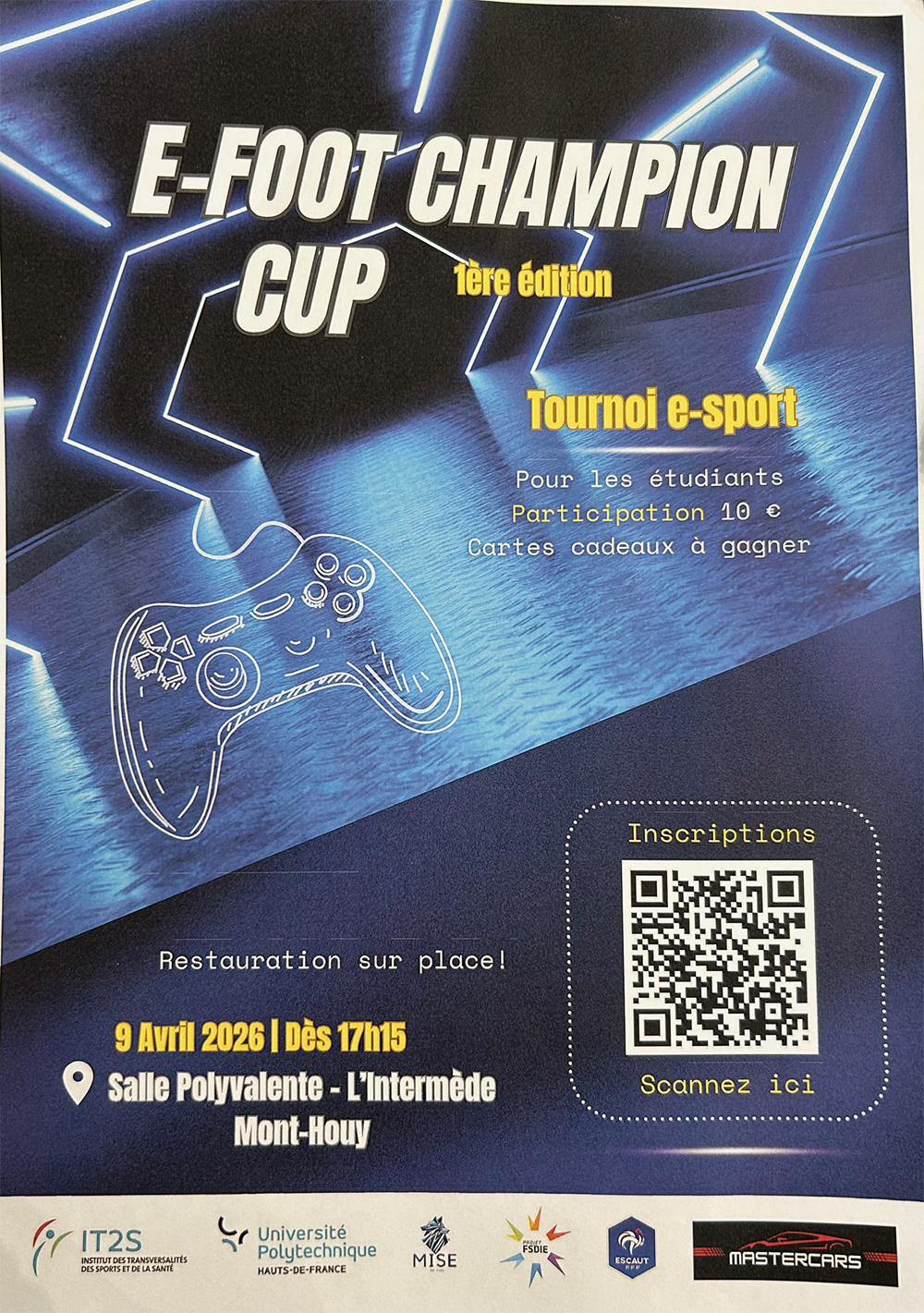 Dans le cadre de leur cursus de 3ème année STAPS « Management du Sport », cinq étudiants de l’Université Polytechnique Hauts de France organisent un tournoi E-Sport le jeudi 09 avril sur le site du Mont Houy. Ce tournoi E-Foot Champion Cup constitue une première à l’image du développement de cette discipline « Gaming » dans le monde du sport. En 2026, l’E-Sport fait donc son entrée officielle dans le giron universitaire du Valenciennois et peut-être bien au delà.