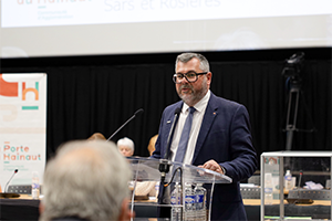 Pour cette élection à la Présidence de La Porte du Hainaut, le candidat Aymeric Robin a remporté la majorité des suffrages communautaires face à l’autre postulant, Jean-Michel Michalak. Par contre, le choix des vice-présidences, 15 au total, a été beaucoup plus complexe avec une opposition frontale entre les deux parties jusqu’à un consensus permettant une gouvernance plus apaisée (visuel Président Aymeric Robin/crédit photos Nicolas Doit/Studio des Sources).