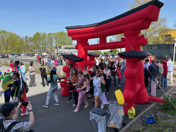 Vers 13H45, les défilés respectifs ont convergé vers un point de rendez-vous dans une joyeuse déambulation costumée, colorée, et décontractée, avec une évidemment une touche japonaise bien sentie. Pour les collaborateurs de l’UPHF et de ses élu(e)s, le travail sur les costumes était à la fois très traditionnel, très imaginatif, et aussi très inspiré des festivals japonais… Du côté de la fibre estudiantine, une vingtaine d’associations étudiantes participaient à l’organisation de cette première édition aux côtés de la Fédération des étudiants de Valenciennes (FEV) et de l’association Entraide Étudiants Étrangers (3E), le résultat est à la hauteur dans la diversité des habillements ; un défilé emmené par une Yaris Cross hybride, symbole du partenariat entre l’université et Toyota Motor Manufacturing France (TMMF).