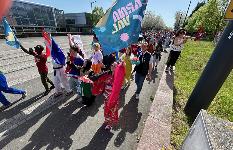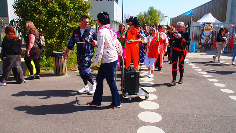 Vers 13H45, les défilés respectifs ont convergé vers un point de rendez-vous dans une joyeuse déambulation costumée, colorée, et décontractée, avec une évidemment une touche japonaise bien sentie. Pour les collaborateurs de l’UPHF et de ses élu(e)s, le travail sur les costumes était à la fois très traditionnel, très imaginatif, et aussi très inspiré des festivals japonais… Du côté de la fibre estudiantine, une vingtaine d’associations étudiantes participaient à l’organisation de cette première édition aux côtés de la Fédération des étudiants de Valenciennes (FEV) et de l’association Entraide Étudiants Étrangers (3E), le résultat est à la hauteur dans la diversité des habillements ; un défilé emmené par une Yaris Cross hybride, symbole du partenariat entre l’université et Toyota Motor Manufacturing France (TMMF).