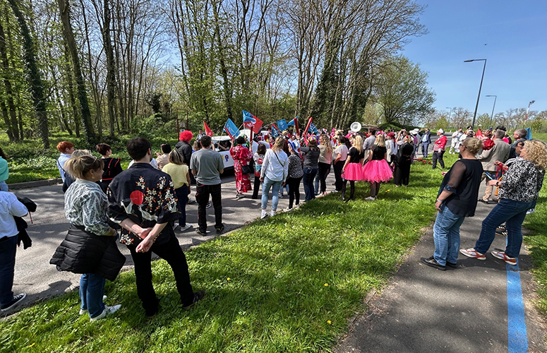 Evidemment, la chaleur printanière commandée depuis le 30 janvier était au rendez-vous pour cette déambulation divisée en deux cortèges. Le premier composé des étudiants partait de l’AGORAE et le second avec de nombreux membres du personnel, de toutes les filières, sans oublier les élu(e)s de l’UPHF, démarrait de la salle polyvalente « l’Intermède ».