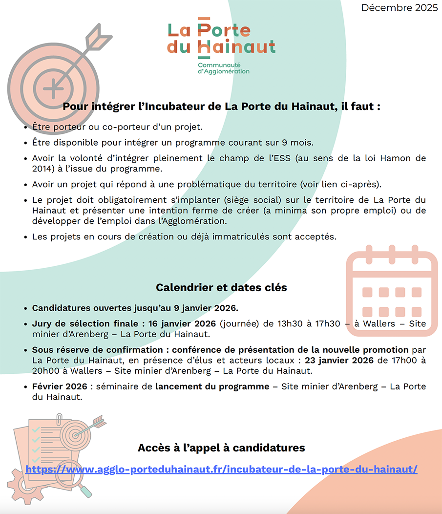 La Porte du Hainaut recherche des porteurs de projets entrepreneuriaux pou son incubateur