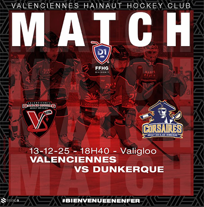 Les Diables Rouges de Valenciennes affronteront les Corsaires de Dunkerque le samedi 13 Décembre